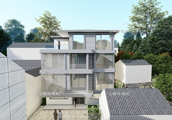 占地面積 120.0㎡ 土建造價 40.0萬 山腳下三層新中式小院
