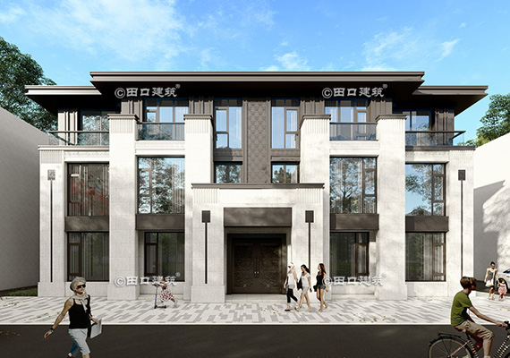 占地面積 142.4㎡ 土建造價 60.0萬 帶底商三層美式別墅